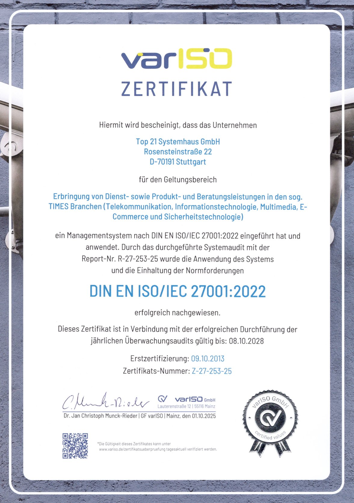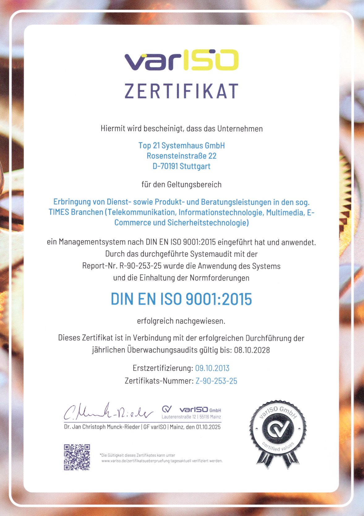 Wir achten auf definierte Sicherheitsstandards. Qualität ist uns dabei genauso wichtig wie die Informationssicherheit und der Datenschutz. Deshalb sind wir bereits seit 2013 nach ISO 9001 und ISO 27001 zertifiziert.